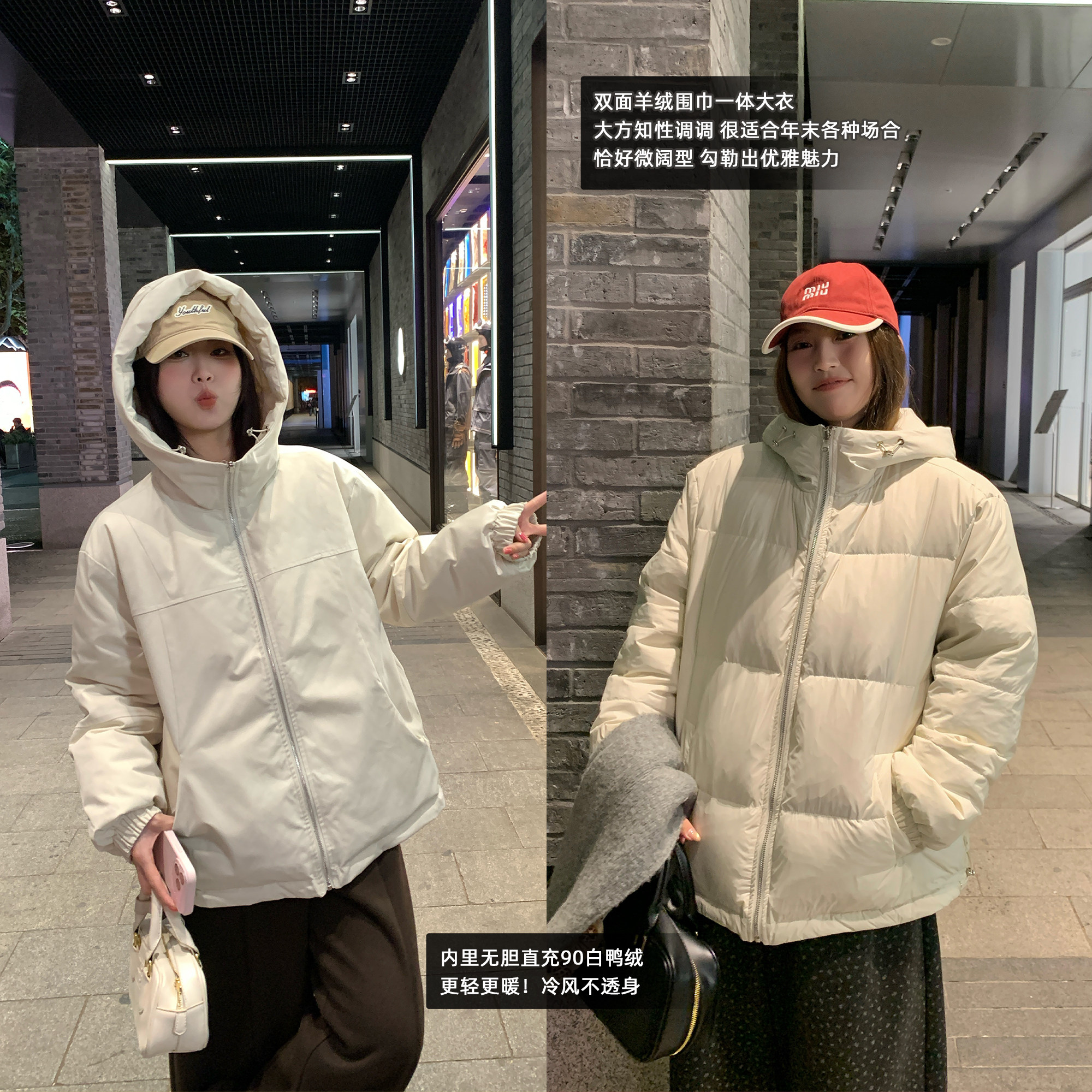 欧货2025新款两面穿连帽工装鹅绒羽绒服女韩版宽松小个子加厚派克