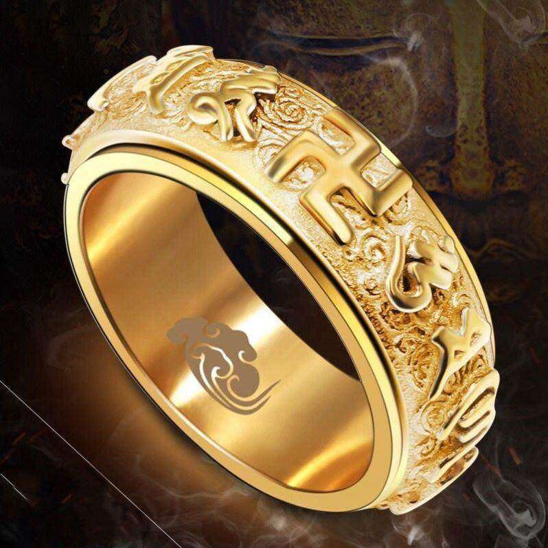 钛钢转动戒指六字真言男士食指大明咒单身潮男成熟个性指环男复古