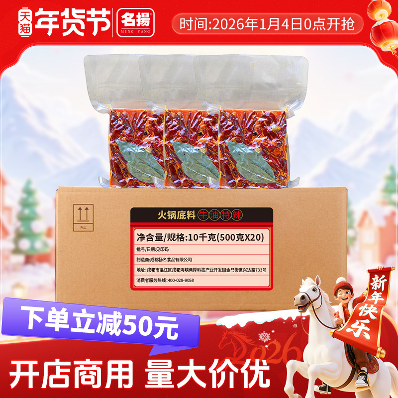 名扬厂家餐饮整箱牛油特辣/微辣火锅底料商用批发火锅串串麻辣烫