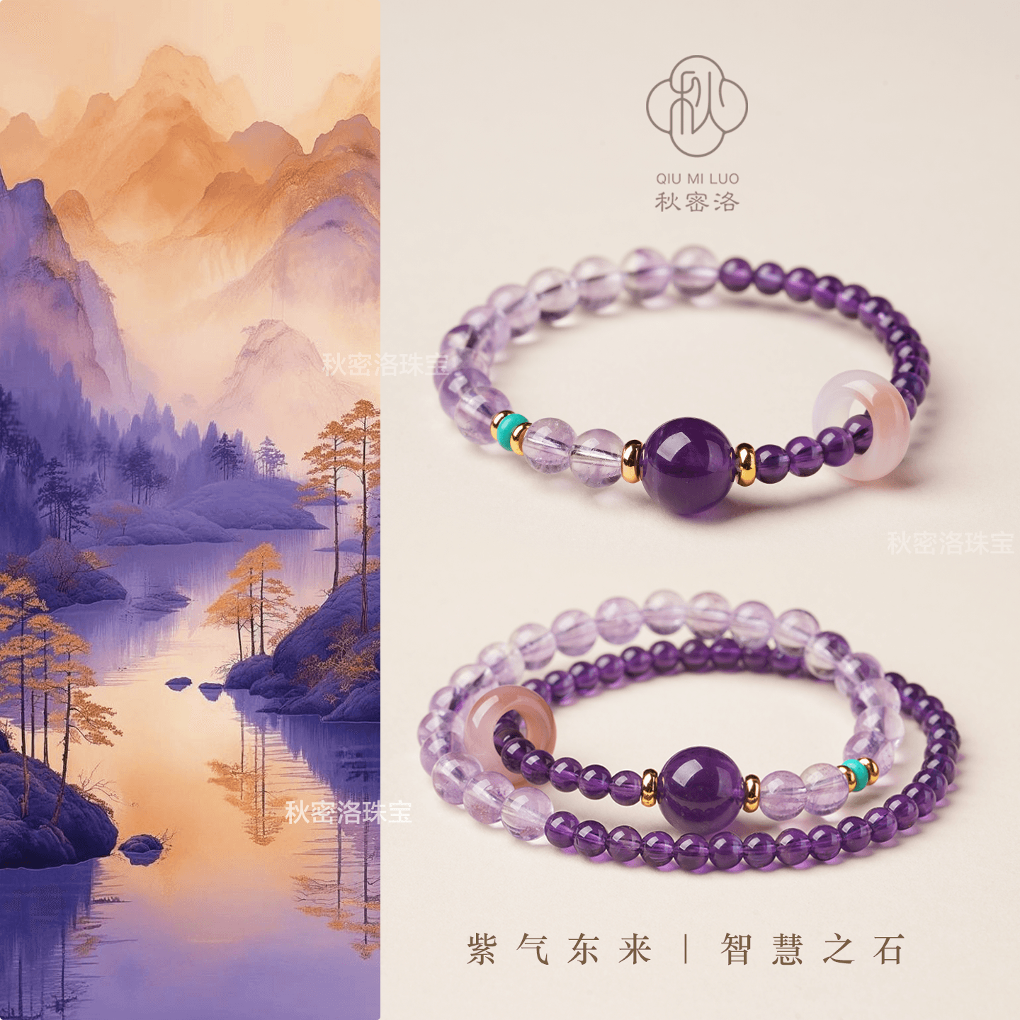 SUMIYAKI “智慧之石” 天然紫水晶手链平衡情绪金属手串闺蜜礼物