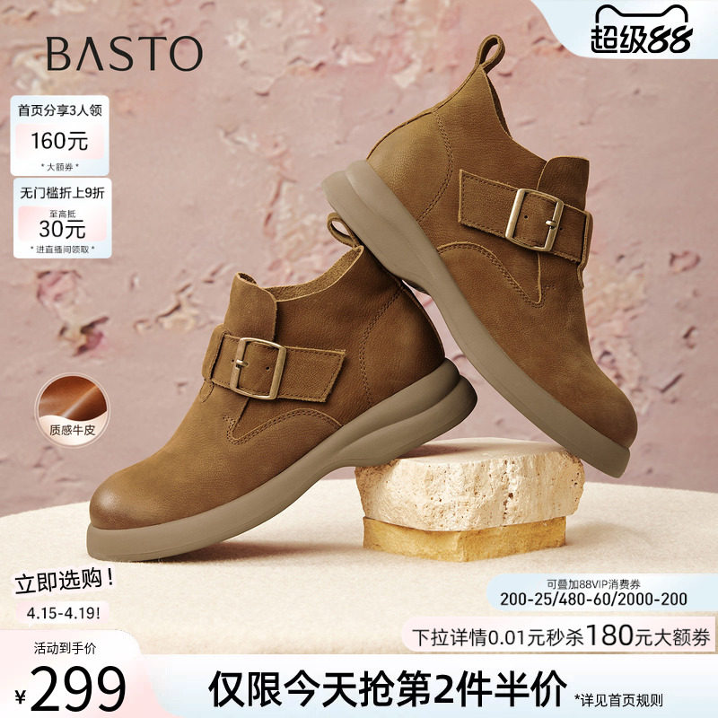 百思图冬季商场新款牛皮擦色马丁靴大黄靴休闲女短靴S2263DD5