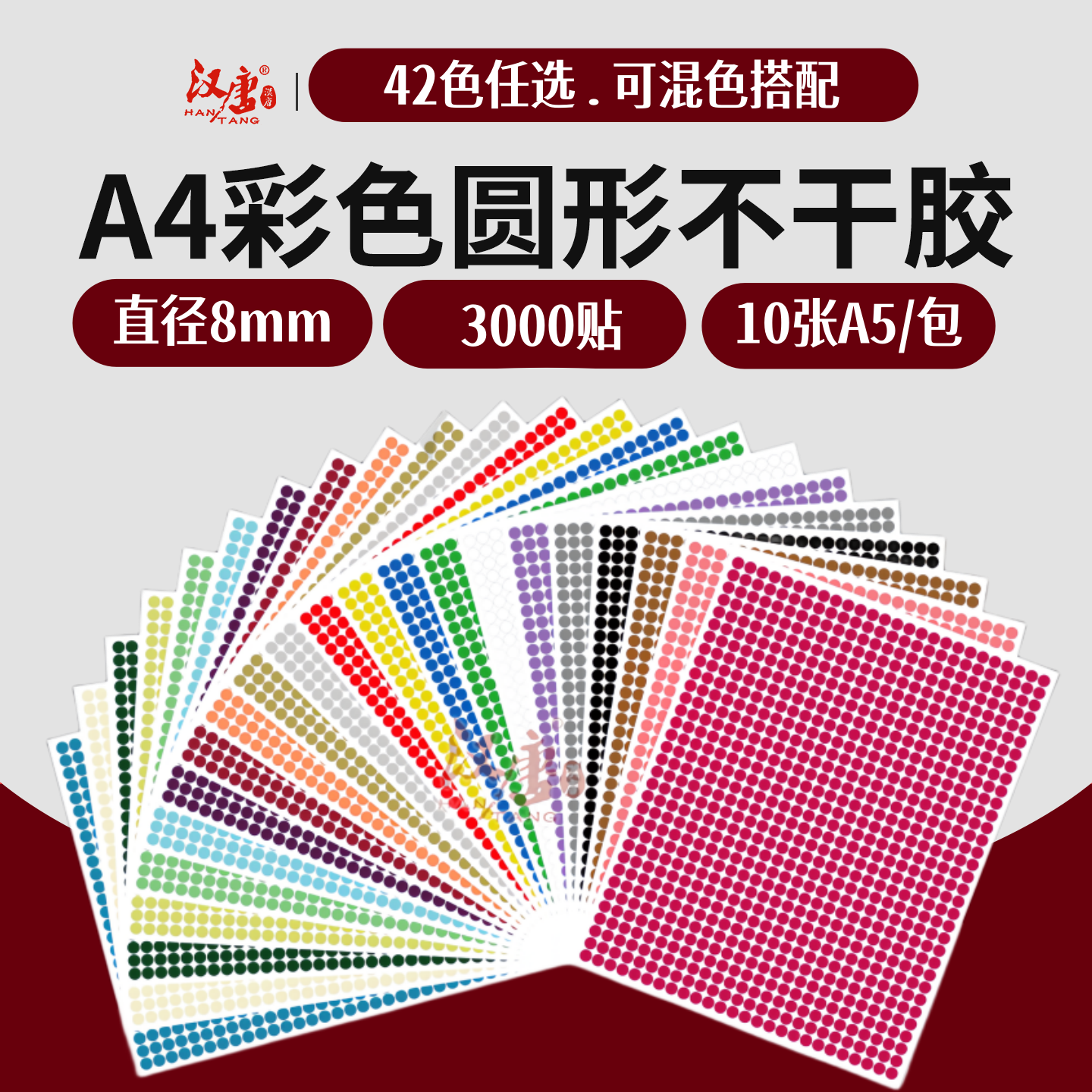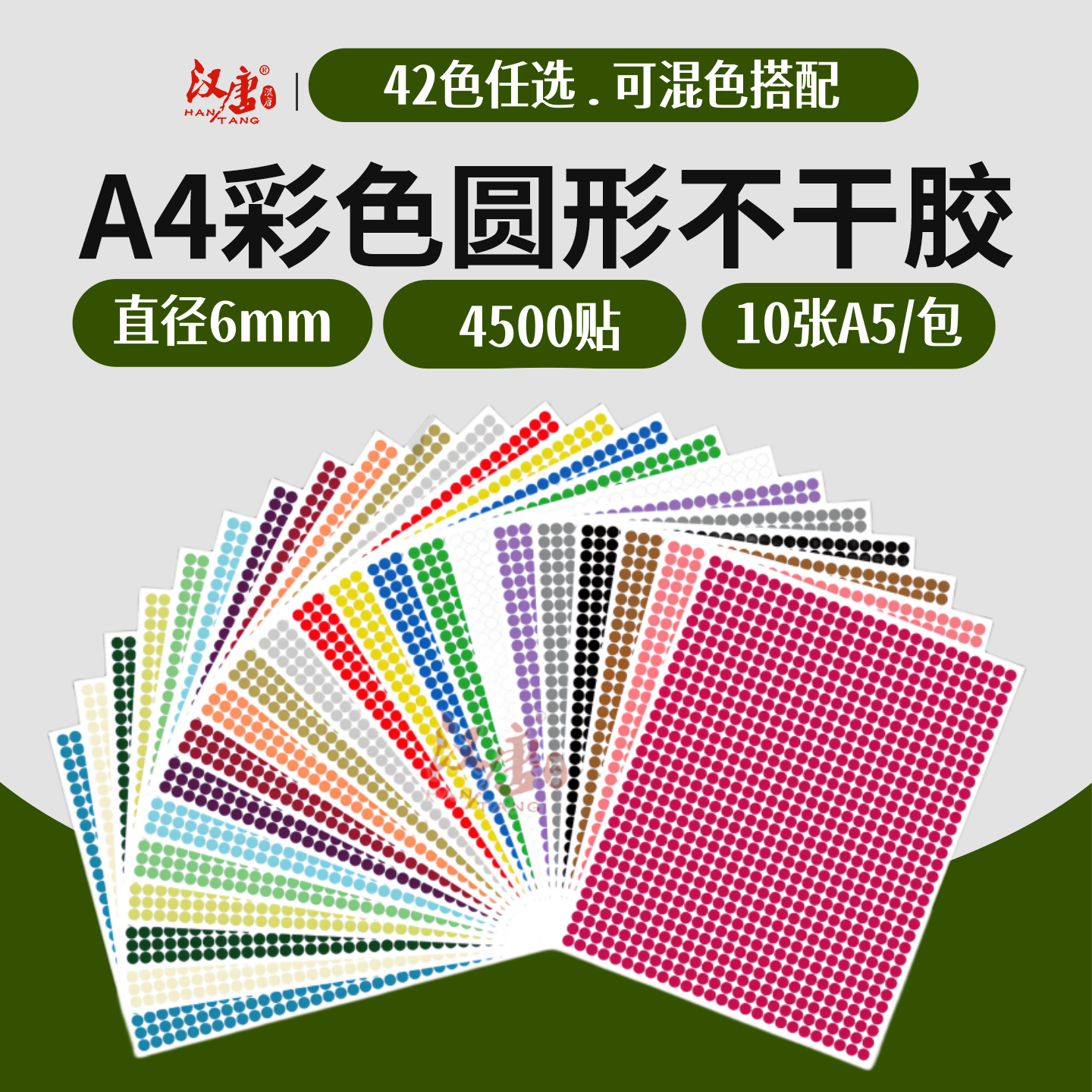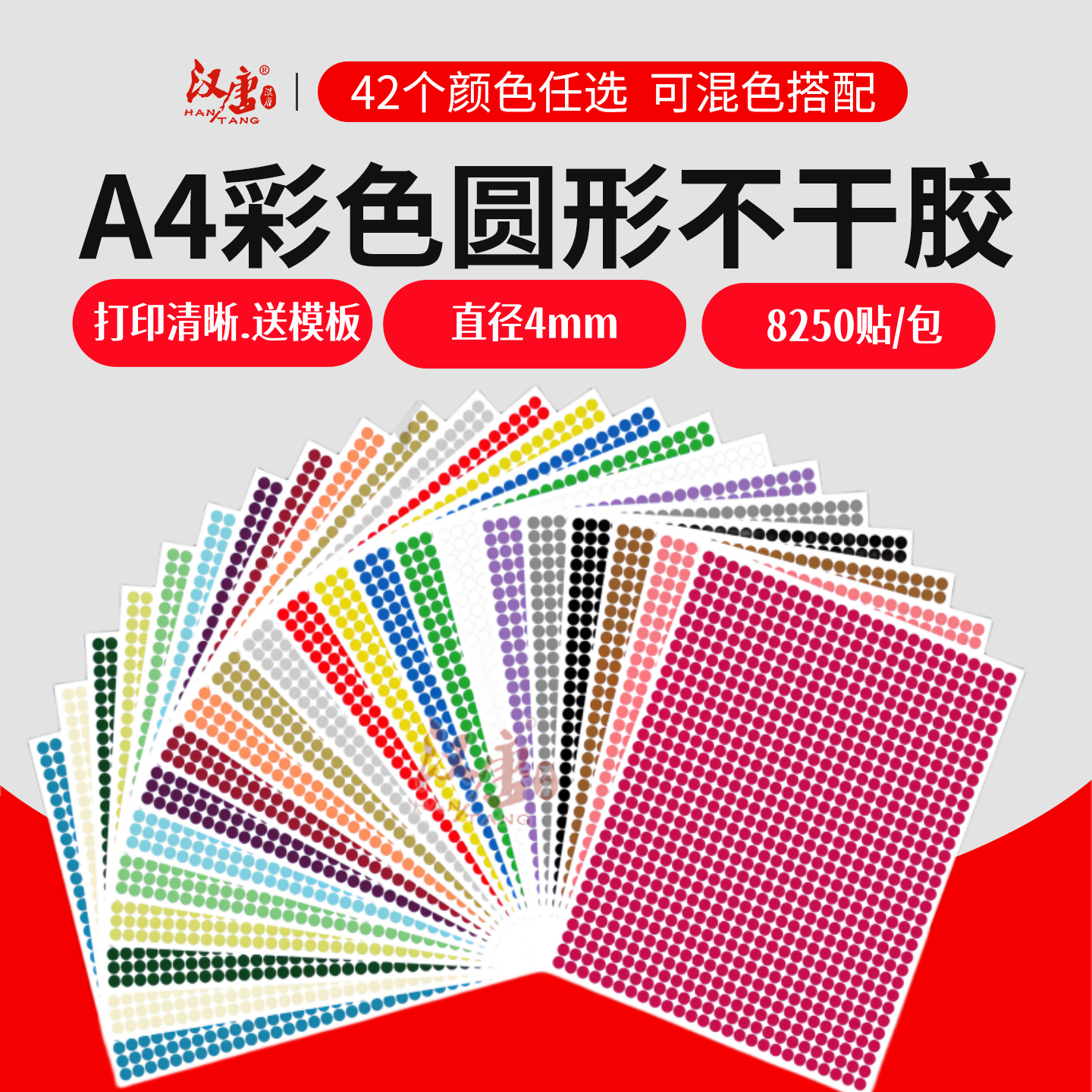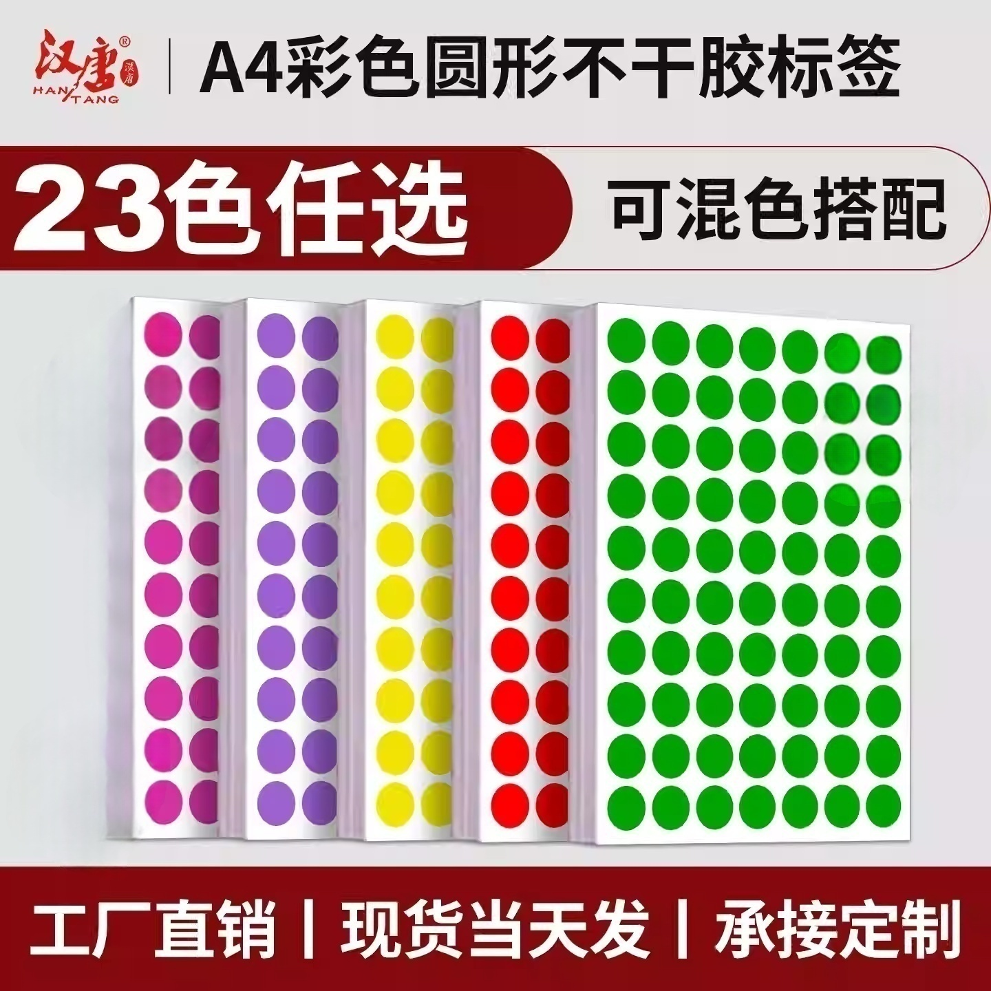 汉唐彩色圆形不干胶4mm圆形贴纸铜版纸光面红黄蓝绿白色圆点不干胶标签环保标签手写ABC字母贴纸数字定制印刷