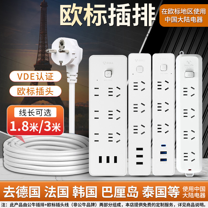 公牛欧标插排德标插头接线板德国法国韩国旅游欧标转换USB插线板