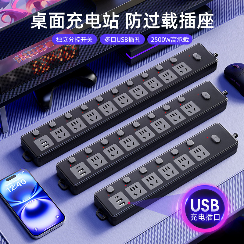 分控插座插排桌面带USB插线板插板带线家用多插位拖接线板多功能