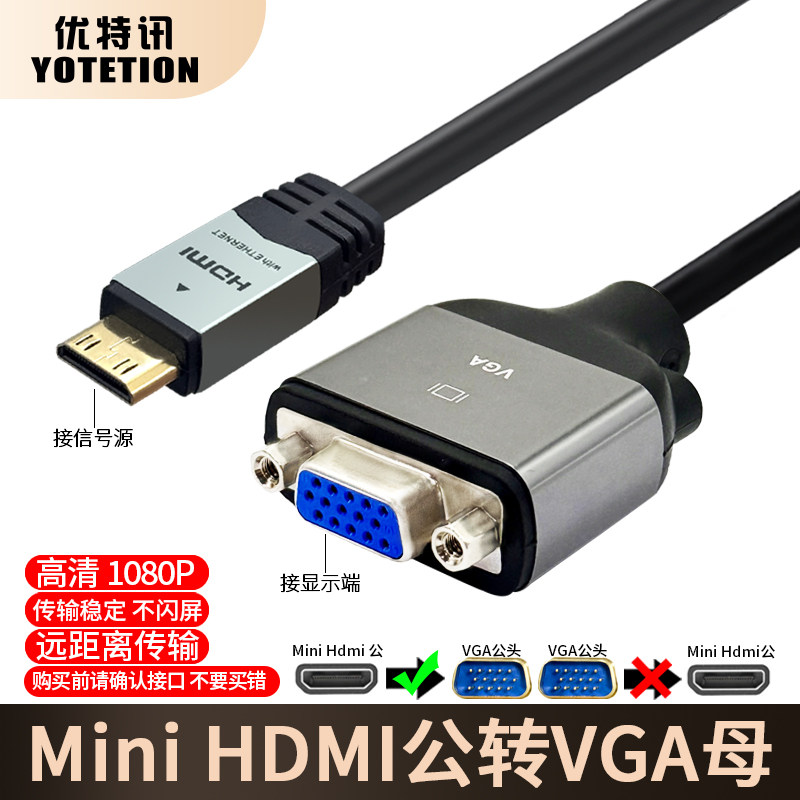 优特讯VGA转Mini HDMI线 笔记本台式机工控机接便携显示器视频线