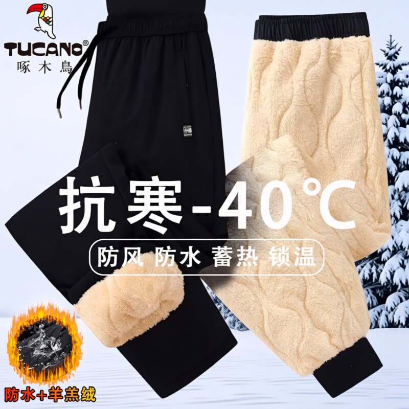 啄木鸟男士羊羔绒加绒加厚棉裤冬东北零下40度防风防水防寒冲锋裤