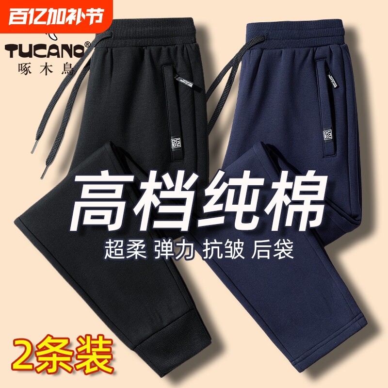 啄木鸟纯棉裤子男士休闲裤春秋新款卫裤冬季加绒加厚保暖运动长裤