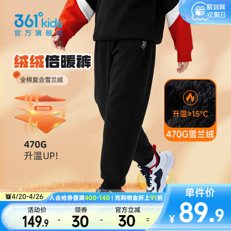 加绒加厚|361度童装儿童裤子男童厚绒冬季保暖长裤女童棉裤运动裤