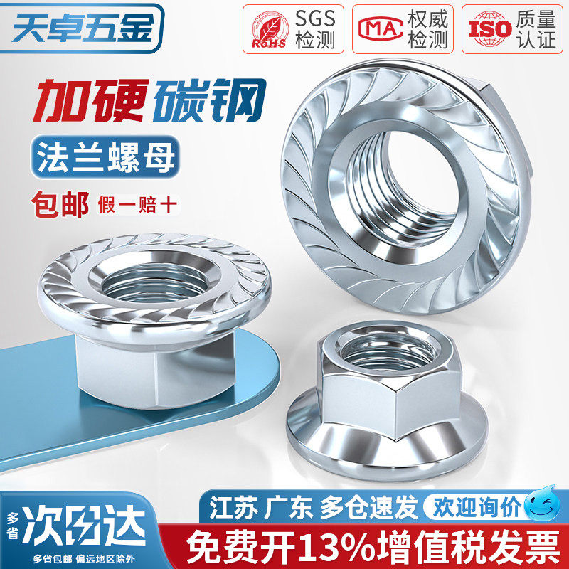 铁镀锌法兰螺母六角防滑防松带垫齿螺丝帽M3M4M5M6M8M10M12M14M16