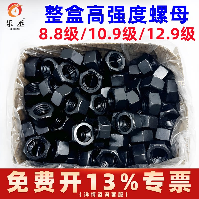 整盒高强螺母8.8级螺母10.9级12.9级粗牙螺母六角螺母螺丝帽M1012