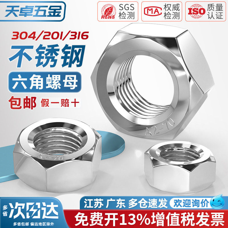 304不锈钢螺母201六角螺帽316L螺丝帽螺栓大全M2M3M4M5M6M8M10M12