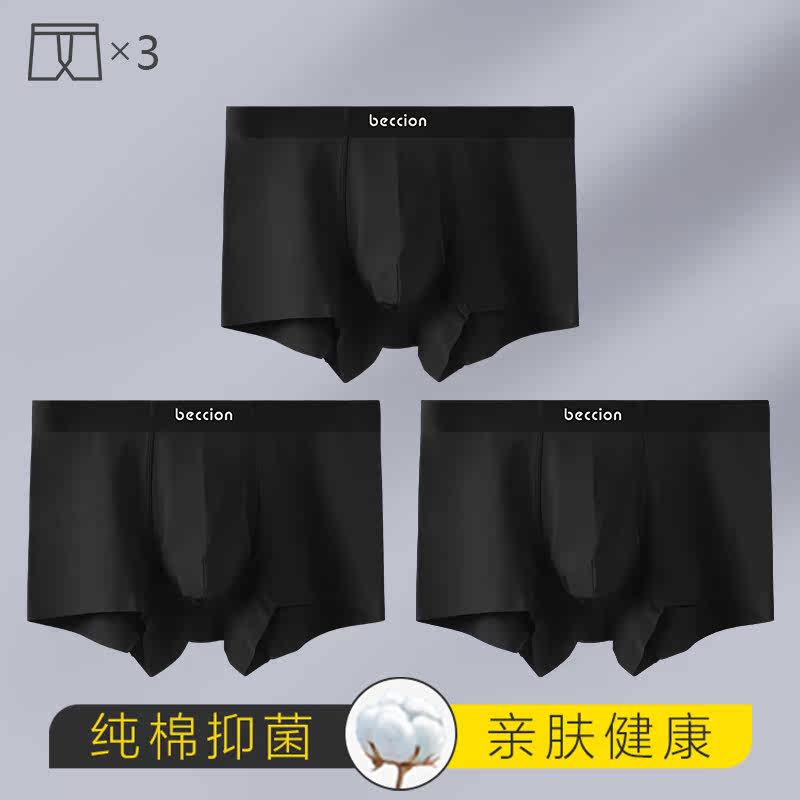 佰氏臣纯棉黑色男无痕内裤性感透气铜离子抗菌棉质面料平角裤纯色