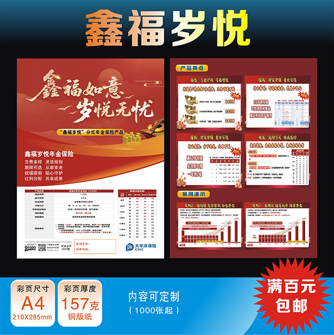 105g157g铜版纸dm彩色单页三折页设计海报说明书A3A4A5宣传单印刷