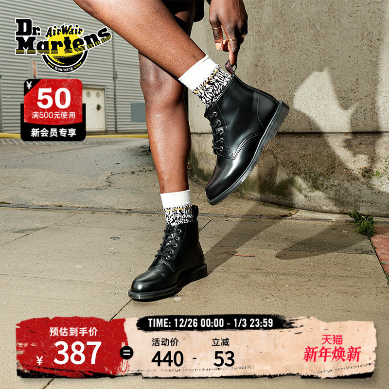 Dr.Martens马丁博士Emmeline英伦冬舒适轻量光面皮黑色短靴马丁靴
