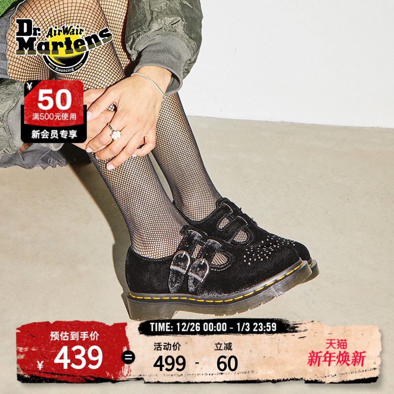 Dr.Martens马丁博士Vegan 8065女秋季舒适百搭铆钉丝绒女玛丽珍鞋