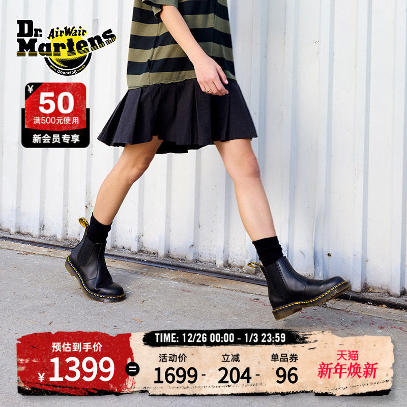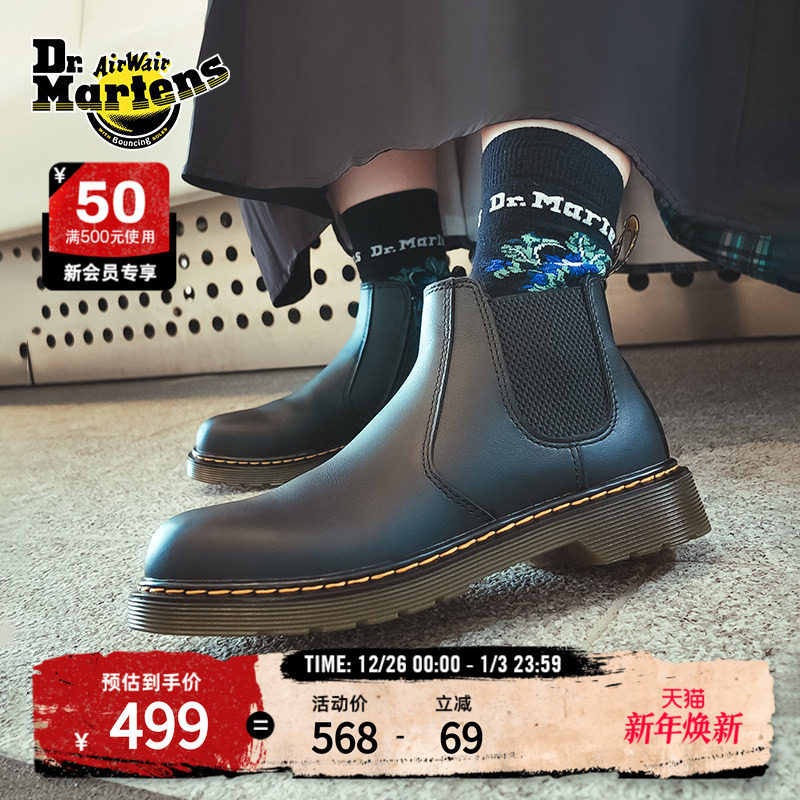 Dr.Martens马丁博士2976 Y女秋冬舒适百搭入门软皮黑色切尔西靴