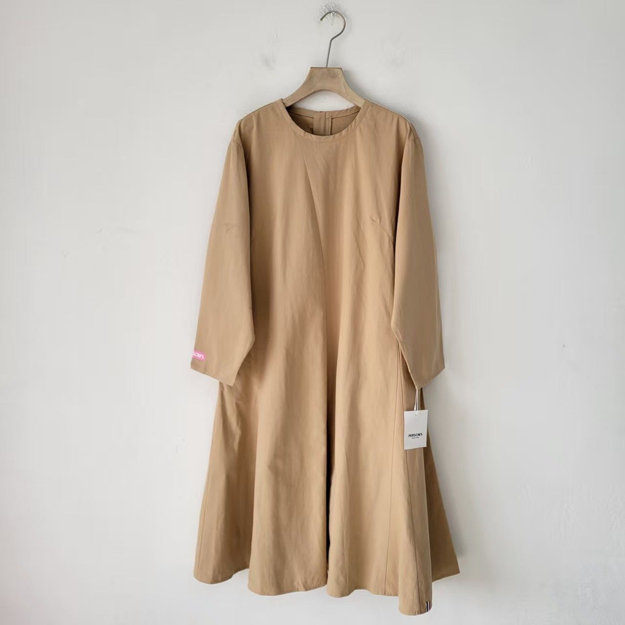纯棉日单春秋季文艺女装新款显瘦纯色a字裙女生长款过膝女连衣裙