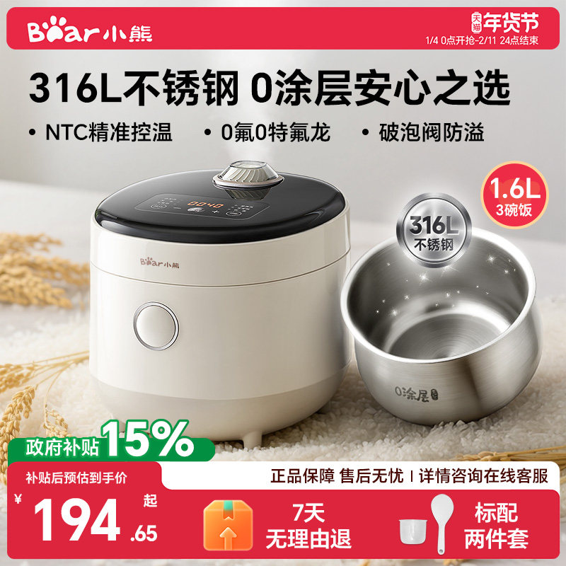 政府补贴小熊迷你电饭煲1到2人316L不锈钢0涂层内胆多功能电饭锅