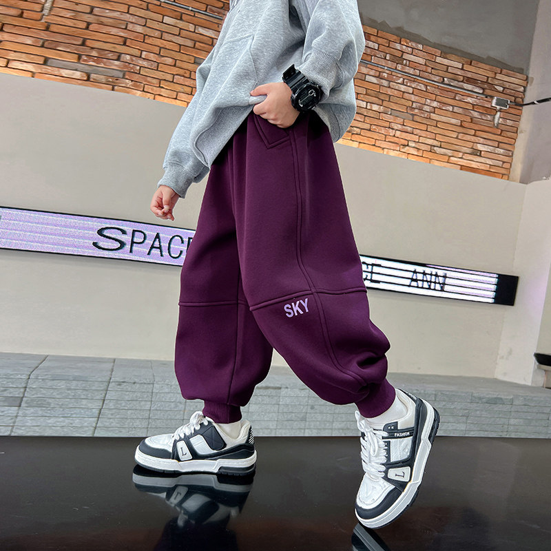 男大童春秋季潮牌运动紫色卫裤2026新款男孩长裤儿童春装宽松裤子