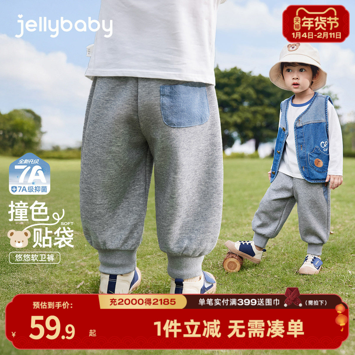 [7A抗菌]男童裤子宝宝运动裤春季男孩休闲卫裤束脚裤儿童春装长裤