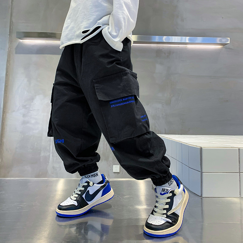 男童春秋黑色工装裤2026新款中大儿童春装痞帅长裤男孩运动裤子潮