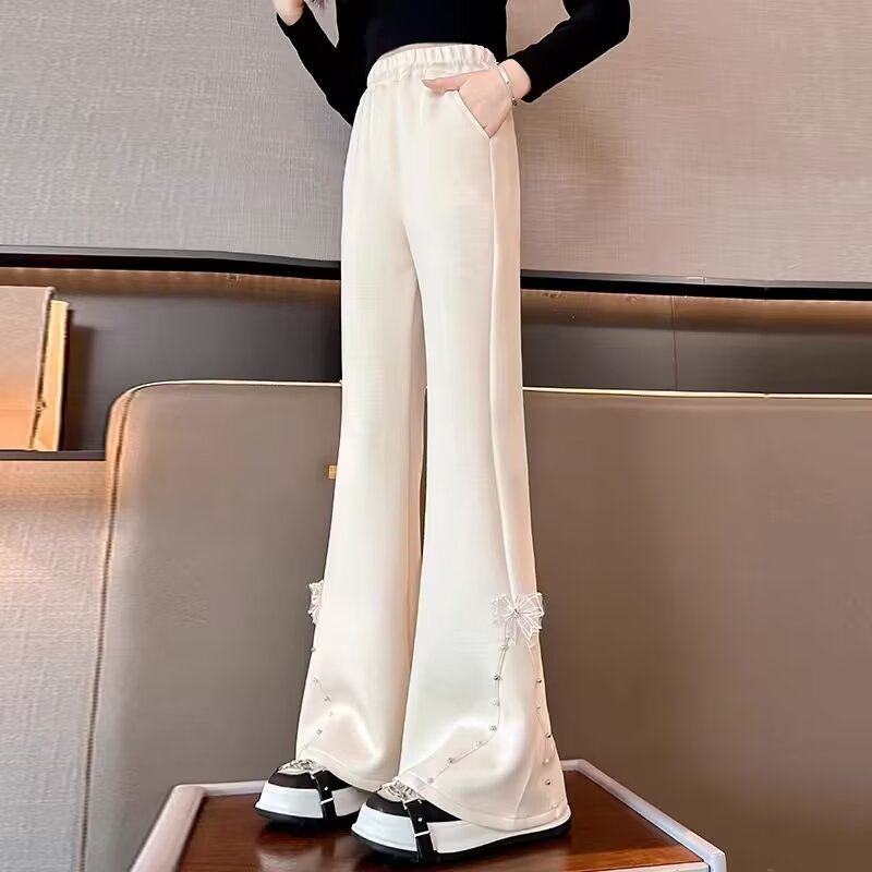 女童蝴蝶结裤子秋冬2025新款中大童喇叭裤儿童春装洋气时髦微喇裤