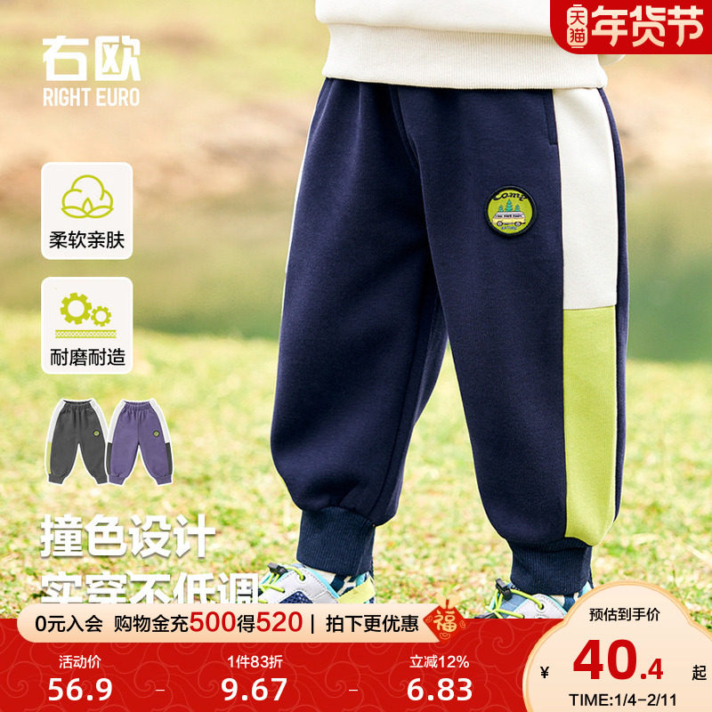右欧男童运动裤2025新款休闲洋气童装儿童春装长裤女童春秋款卫裤