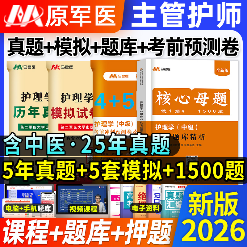 原军医版主管护师中级备考2026年护理学中级考试历年真题试卷押题库模拟习题集可搭人卫版轻松过教材随身记学霸笔记丁振震网络课程