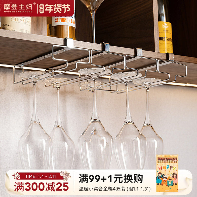 摩登主妇免打孔倒挂红酒杯架置物架2026新款高级感轻奢高脚杯架子