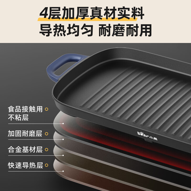 小熊电烤炉家用多功能烤肉盘不粘电烤盘烧烤炉烤肉机室内轻烟烤串