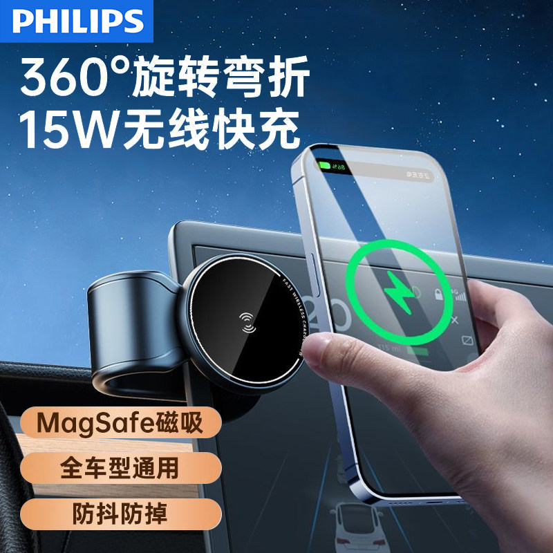德国进口飞利浦车载手机支架无线充电器磁吸超级快充2026新款汽车