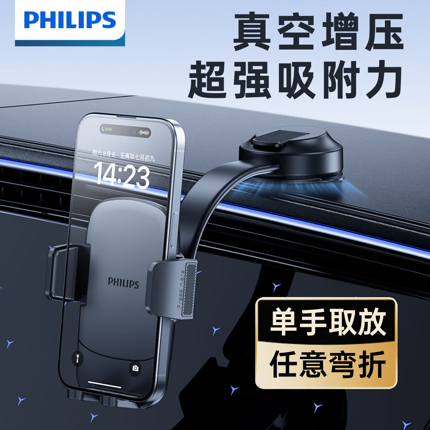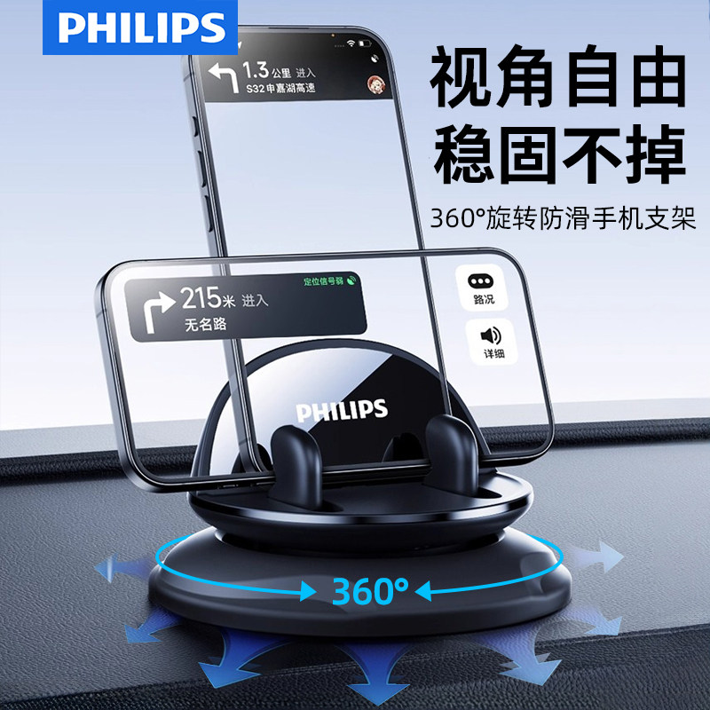 飞利浦车载手机支架吸盘式仪表台中控粘贴导航支撑夹2024升级款