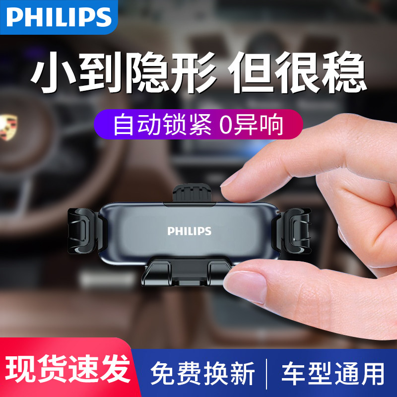 飞利浦车载手机支架出风口固定汽车导航车内上车用重力万能通用型