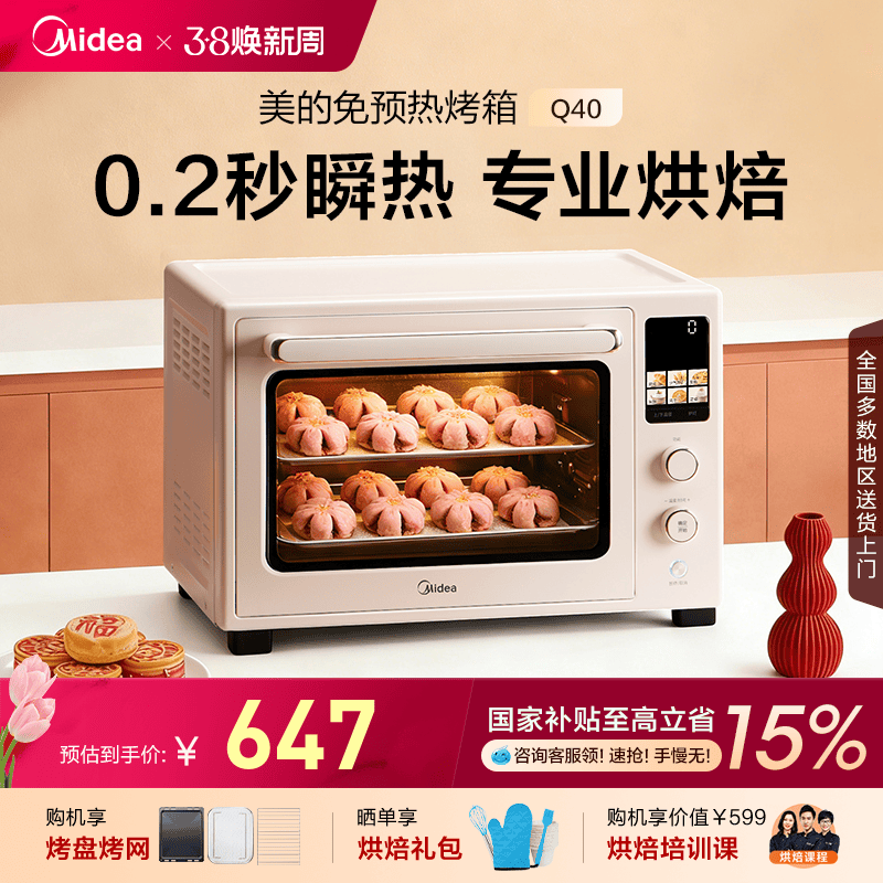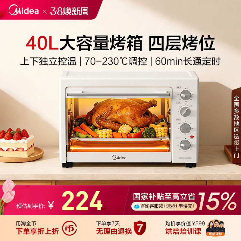 美的烤箱家用小型2024新款40升大容量多功能蛋糕烘焙专用电烤箱