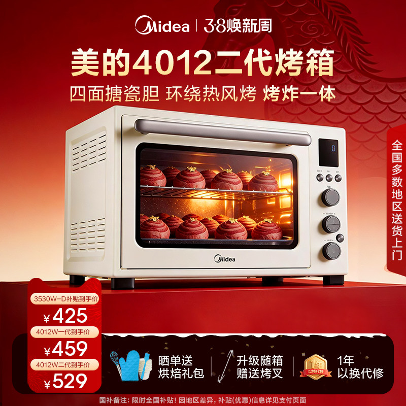 [补贴15%]美的电烤箱4012风炉烤箱家用烘焙空气炸锅烤炸一体机40L
