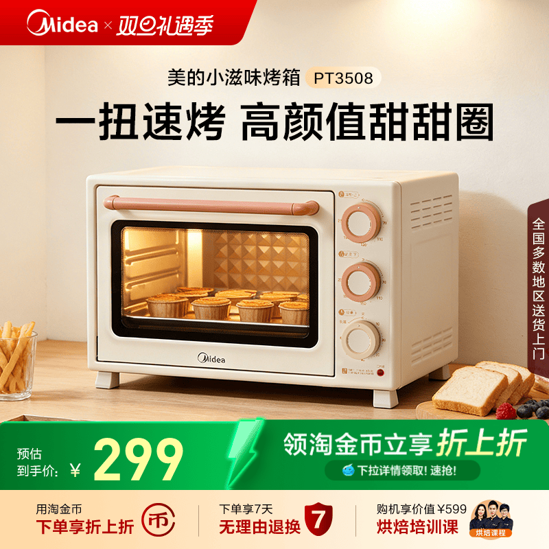 美的电烤箱家用小型容量多功能新款蛋糕蛋挞烘焙台式焗炉一体风炉