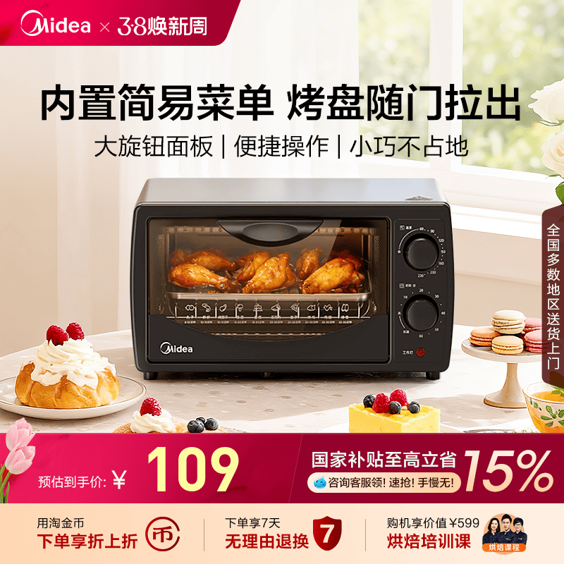 政府补贴美的烤箱家用烘焙专用小型电烤箱10升多功能蛋挞机108B