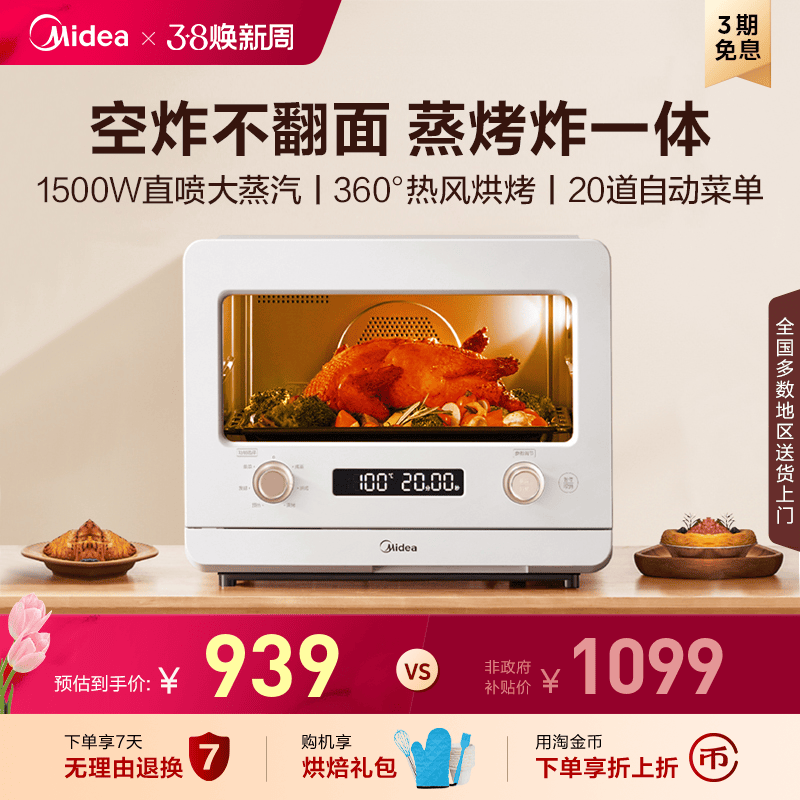美的电烤箱家用S10蒸烤炸一体机多功能蒸烤箱空气炸锅电蒸箱小型