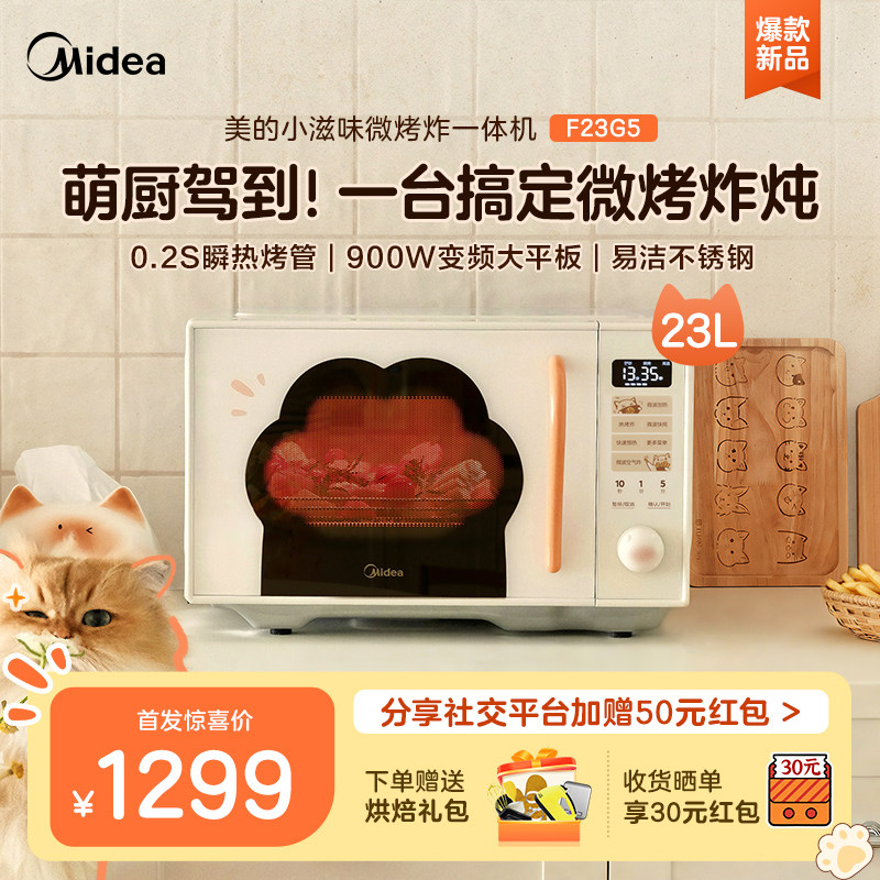 美的小滋味微波炉微烤炸一体家用不锈钢23L蒸烤箱新款猫爪F23G5