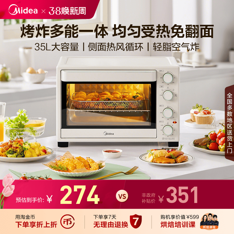 美的烤箱烘焙专用家用小型空气炸烘烤一体大容量多功能电烤箱3515