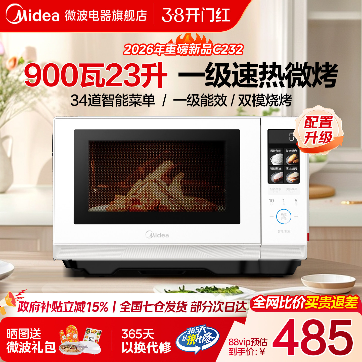美的变频微波炉家用平板光波炉微蒸烤箱一体机多功能26年新品C232