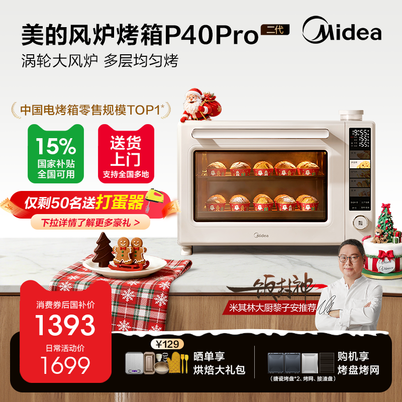 政府补贴美的P40二代风炉烤箱家用空气炸烘焙专用2025新款电烤箱