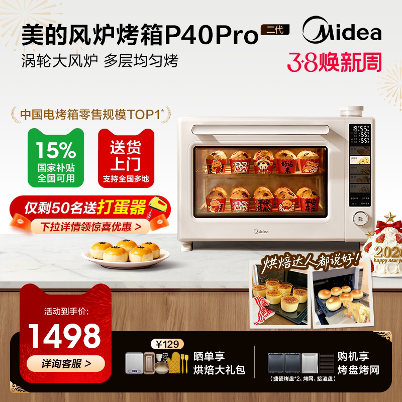 美的P40Pro二代风炉烤箱新款小型家用烘焙商用空气炸锅电烤箱一体