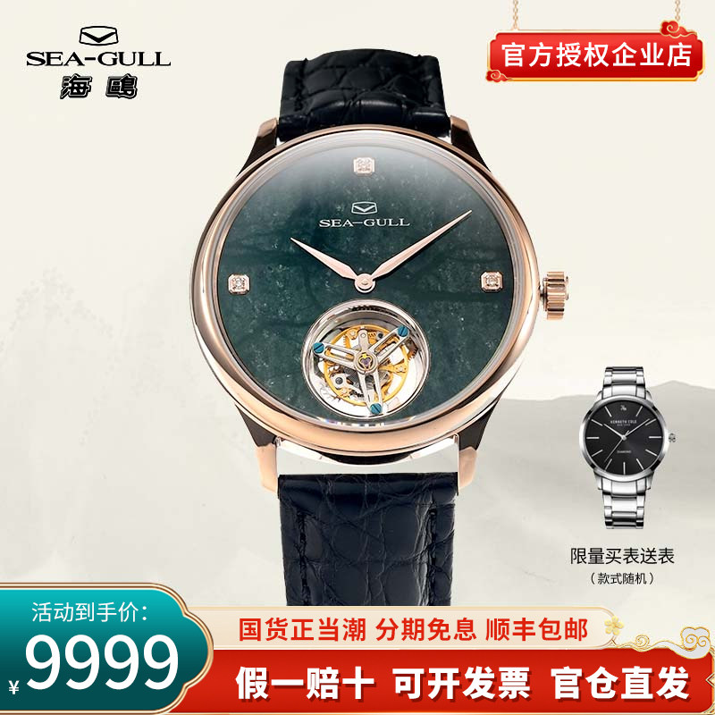 原装正品海鸥手表男士真皮带商务简约镶钻陀飞轮机械表男表7072V
