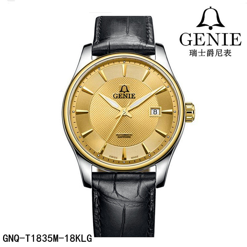 瑞士正品GENIE/爵尼手表 18K金男表机械表全自动真皮金爵系列1835