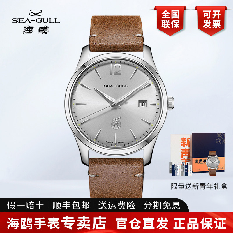 原装正品海鸥手表男士复古简约真皮全自动机械表男表51新青年6143