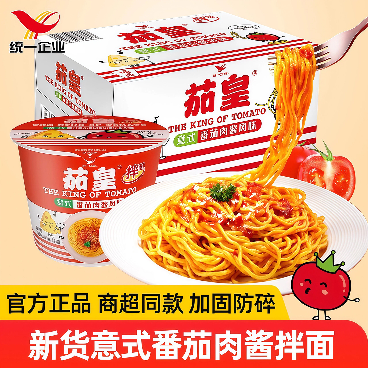 统一茄皇意式番茄肉酱拌面126g桶装整箱宿舍方便面泡面条夜宵正品
