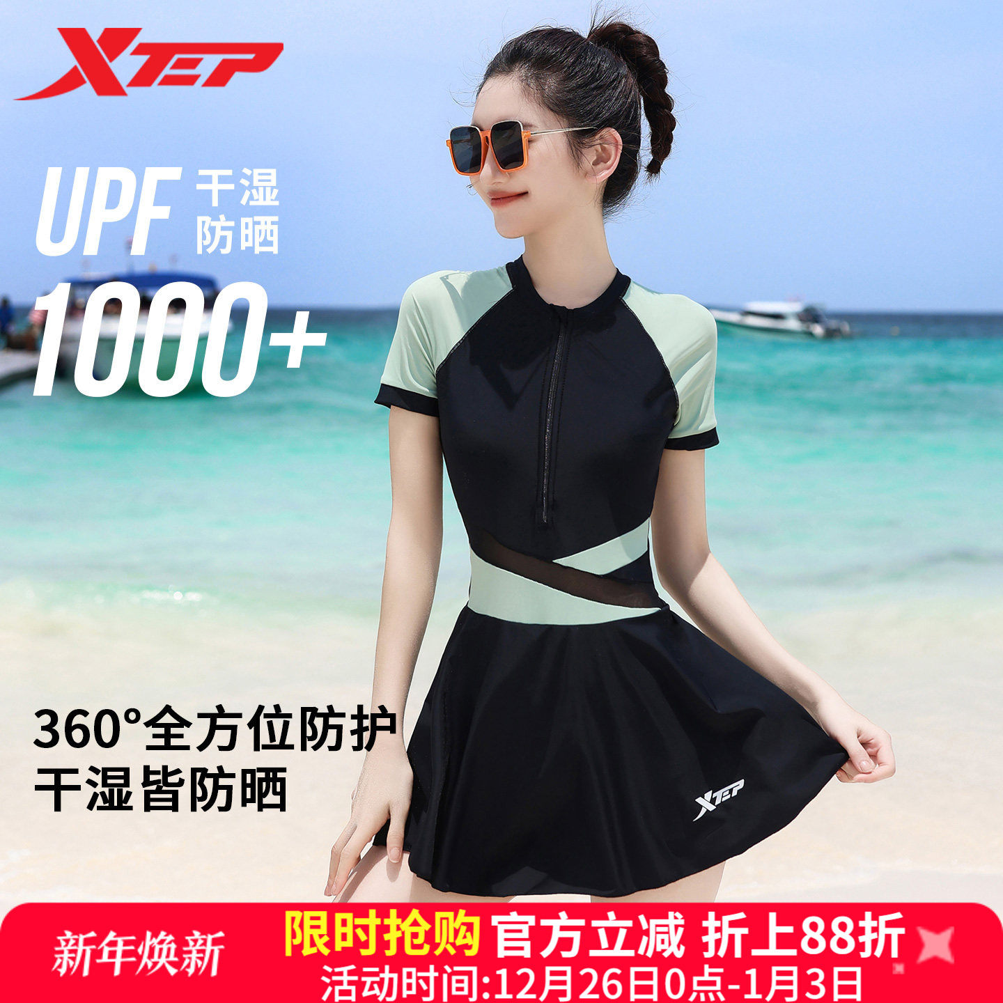 特步泳衣女2025新款遮肚显瘦仙女范学生保守防晒裙式连体时尚温泉
