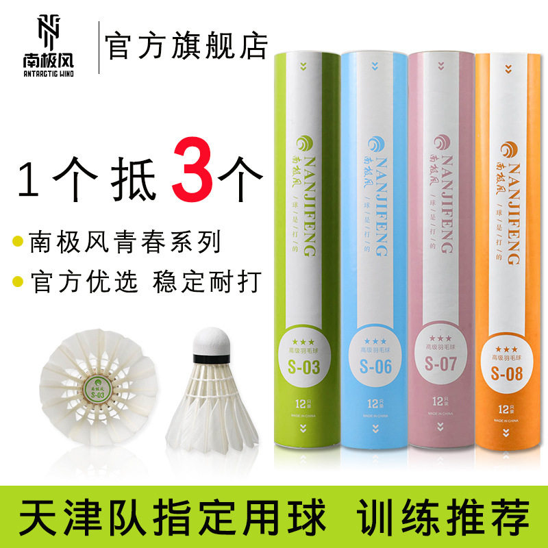 南极风羽毛球青春风系列耐打王羽毛球白羽黑鹅毛不易烂训练羽毛球