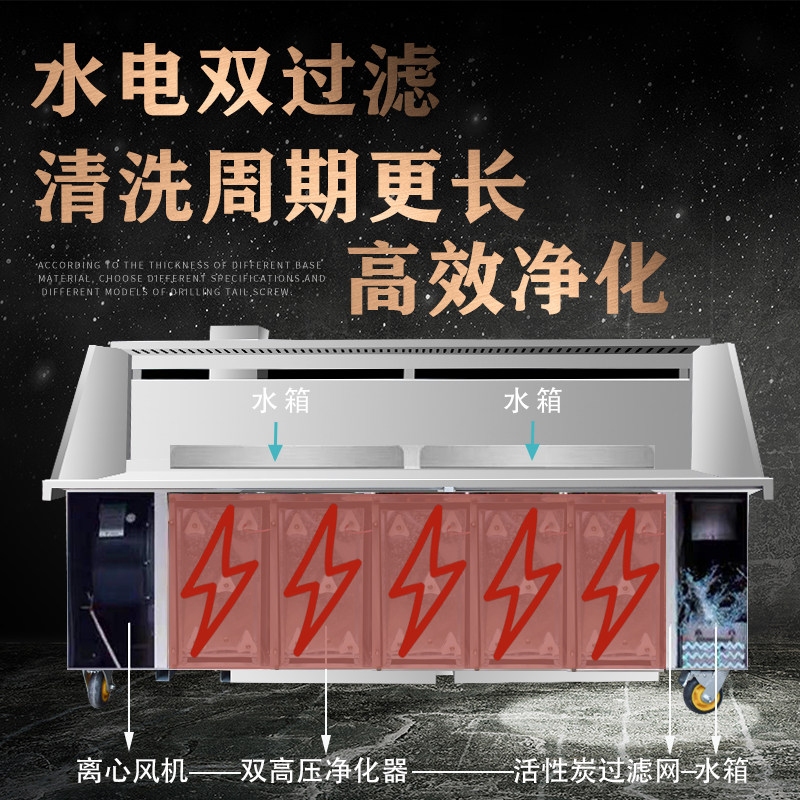 高端水电复合无烟净化烧烤车商用环保免清洗移动烧烤炉净化器平吸